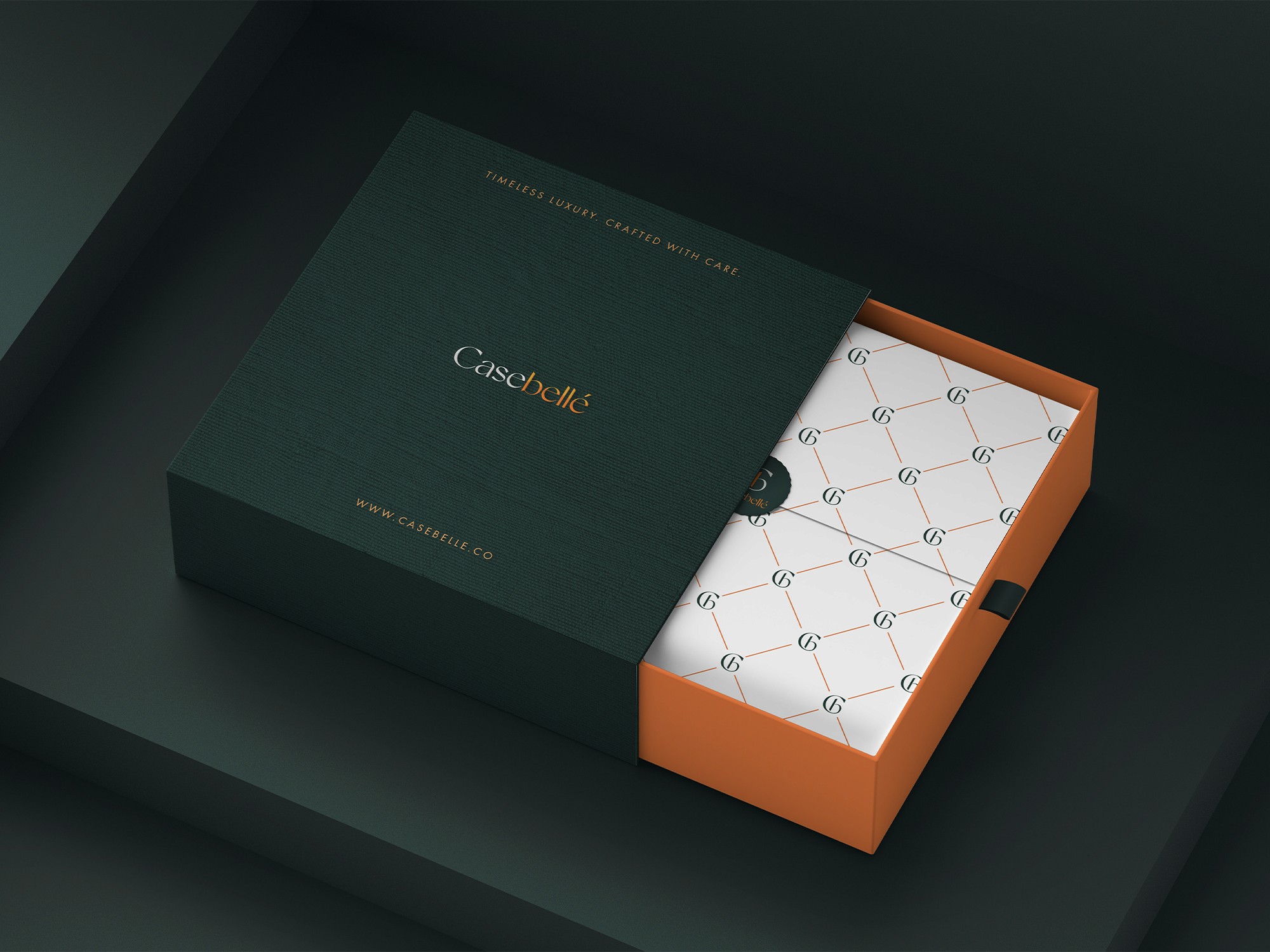 To carry the visual system beyond the product, I developed packaging that feels collectible and calm. The drawer box in deep green and terracotta, custom tissue wrap, and monogrammed seal work as a single language, in color, tactile in finish, and precise in execution. It’s designed to elevate the moment of unboxing and reinforce the brand in the smallest interactions.